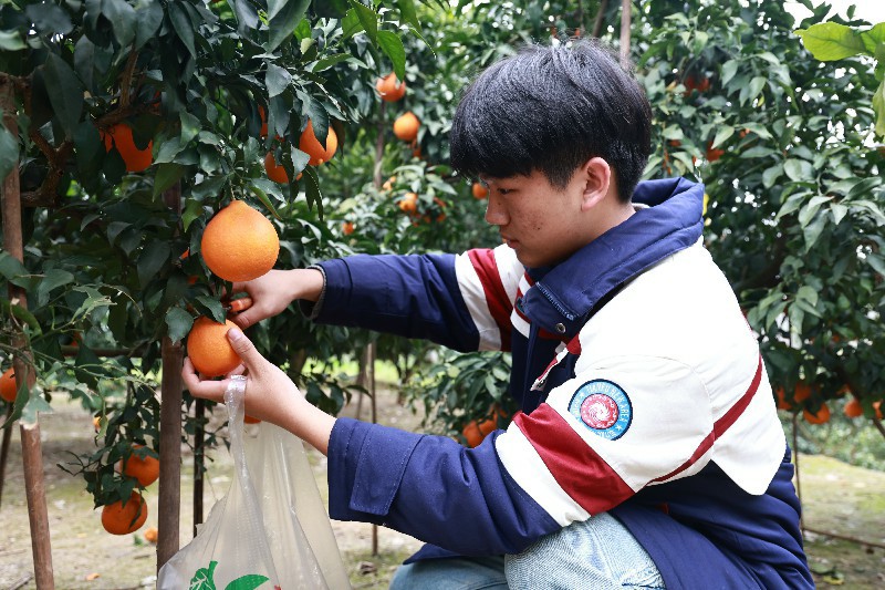 金黄的橘子挂满枝头,同学们在果树间忙碌穿梭,小心地采摘、装筐、整理。欢声笑语回荡在果园中,既减轻了农户的劳作压力,也让同学们在实践中体验到劳动的价值与收获的喜悦。