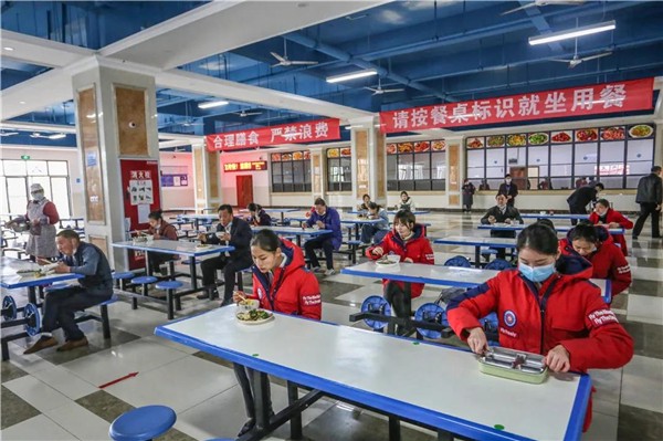 就餐时,只能在桌面上贴有绿色标识的位置就餐,避免面对面,不扎堆,就餐中不交谈,保持安全就餐距离。入座后方可摘下口罩,就餐结束后立即佩戴口罩,按指定出口有序离开。