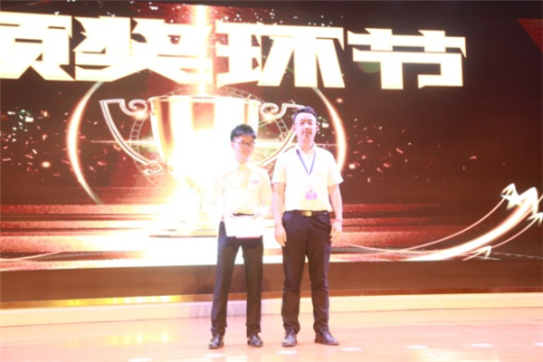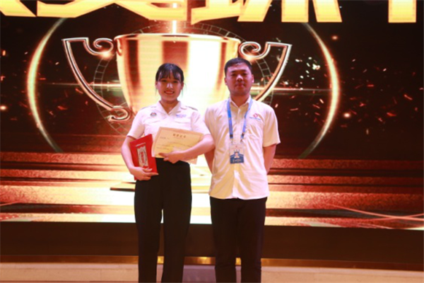 2019级城市轨道3班廖芋云荣获最佳风采奖,眉山东星航空职业学校团委书记王宝鹏为他颁奖。