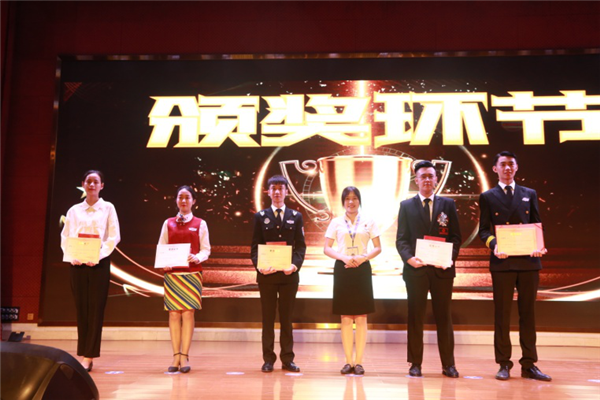 19级旅游管理4班王丹、19级轨道交通2班夏成奉、18级机场运行1班周成昊、19级空乘9班赵彦森、19级空乘12班张朝洋荣获优秀奖,学院学生管理科科长冯雨为他们颁奖。
