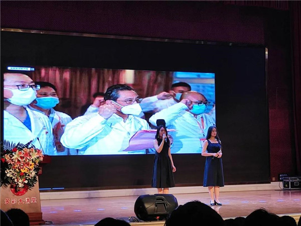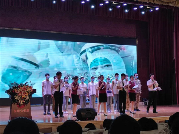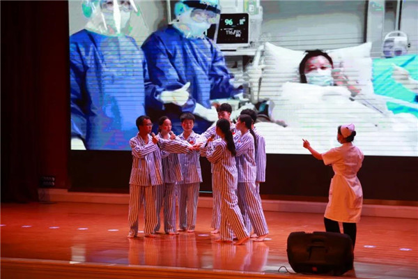 四号作品由2018级高职空乘1班冯思茹、曾怡莲、朱鑫汇、秦唯淞、何明宇、马震带来的《背影》,通过讲演的方式讲述出抗疫医护工作者的艰辛。
