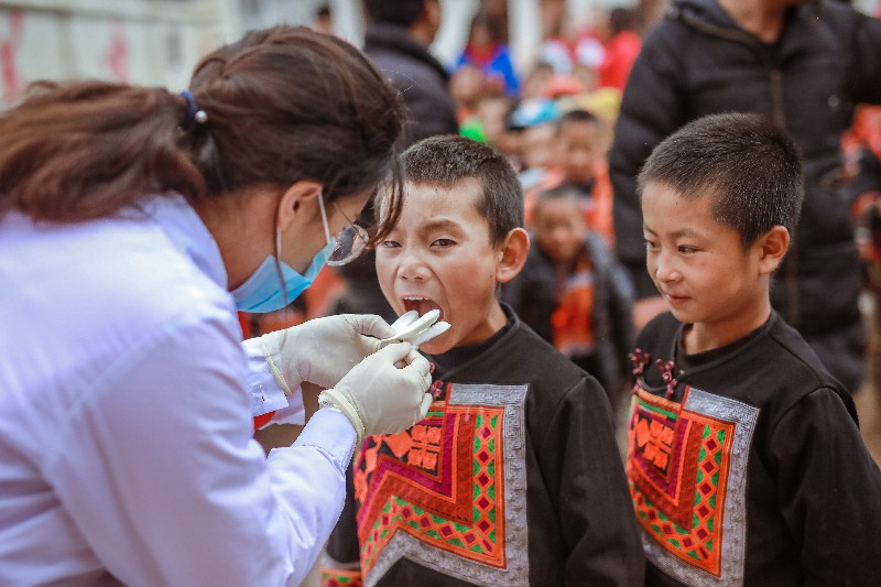 除了给小朋友们送来吃穿的生活物资,“一厘米温暖公益团队”还做了一件不一样的事。今年把对山区孩子的关注点放在“口腔健康”上,通过提前与学校老师、当地扶贫干部的深入沟通,发现村小的孩子对于口腔健康的认知还很薄弱,而村小的孩子所处年龄段恰巧是预防龋齿的关键阶段。