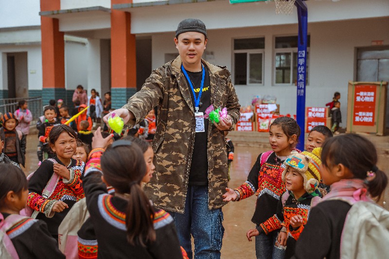 与村小的小朋友在一起的时间里,他们改变了从前的想法。总以为孩子们受了生活的重压脸上会缺少笑容,可是天真爽朗的笑声和眼神里泛出的光芒,令所有人动容。原以为志愿者是为孩子们送去微光,为他们点亮求知的希望,接触后才发现是孩子们眼睛里的光激励着所有人,温暖着成年人脆弱的心脏。