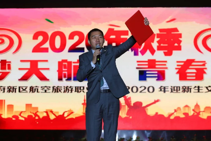 东星航空教育集团董事长、天府新区航空旅游职业学院总督学辜英智发表讲话。他首先欢迎同学们加入天航大家庭,希望同学们在天航种下的梦想种子能够生根发芽,茁壮成长。在天航大舞台张扬青春正能量,使自己成为阳光积极,乐观向上,对祖国社会有用的栋梁之才。