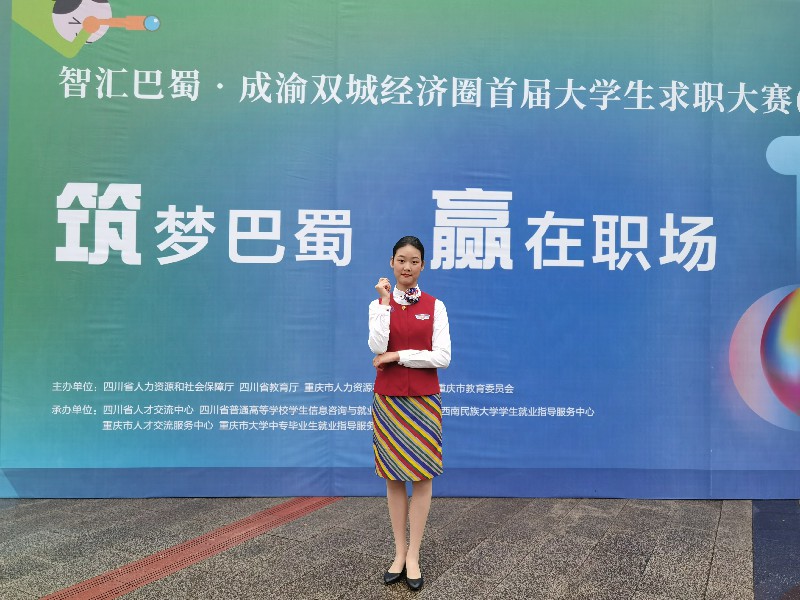 整齐的职业套装,铿锵有力的自我介绍,展现了当代大学生的风采。11月27日,智汇巴蜀·成渝双城经济圈首届大学生求职大赛四川赛区复赛在西南民族大学拉开帷幕,我校选手2018级空乘专业学生代燚和70位来自全省各个高校的代表选手展开激烈角逐,争夺决赛“门票”。