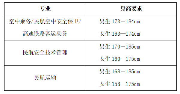 3.航空物流、城市轨道交通运营管理、旅游管理、导游、会展策划与管理专业身高要求: