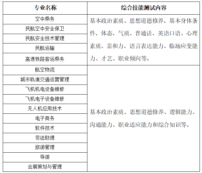 1.空中乘务、民航空中安全保卫、民航安全技术管理、民航运输、高速铁路客运乘务专业要求: