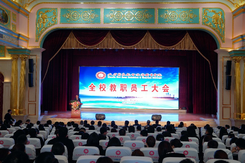 2月26日上午,天府新区航空旅游职业学院2020—2021年第一次全校教职工大会在多彩大讲堂举行,大会由副院长唐健禾教授主持,全体教职工参会。