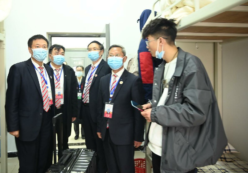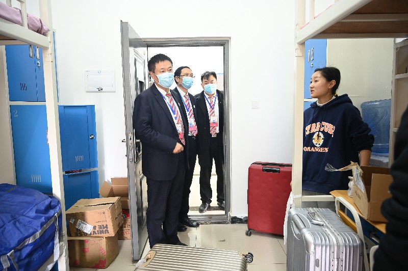 下午刘院长一行还对男女生宿舍进行了全方位检查。进入学生寝室后,刘院长亲切询问学生们的住宿情况、设施设备是否完善,学生住宿是否舒适、督促学生们要整理好自己的物品,将寝室卫生打扫干净。