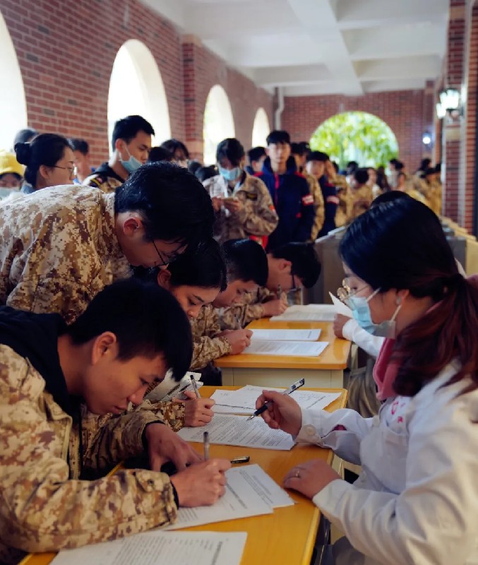 我院师生疫苗接种工作得到上级部门的大力支持和亲切关怀,当日上午,锦江镇卫生院上门到学院进行疫苗接种,同学们有序的排队进入凤凰楼大厅,首先签署知情同意书。同学们可以咨询医生,了解自己是否符合接种疫苗,进入接种区扫码登记、体温检测、血压测量。