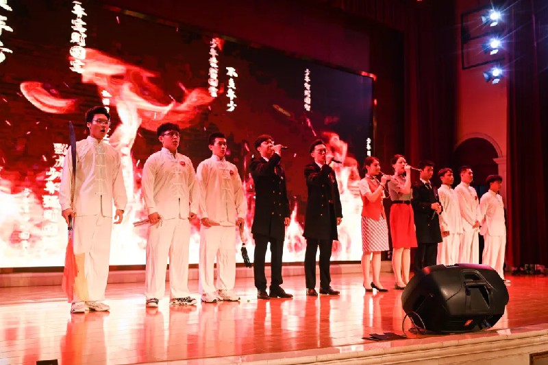 全场观众热血沸腾,纷纷起立高呼,庆祝“中国共产党成立100周年”“雅言颂经典、真情咏中华”五四文艺汇演落下帷幕。让我们珍惜青春年华,在奋斗中领悟青春的瑰丽,用满腔的激情热血 共同创造美好未来!