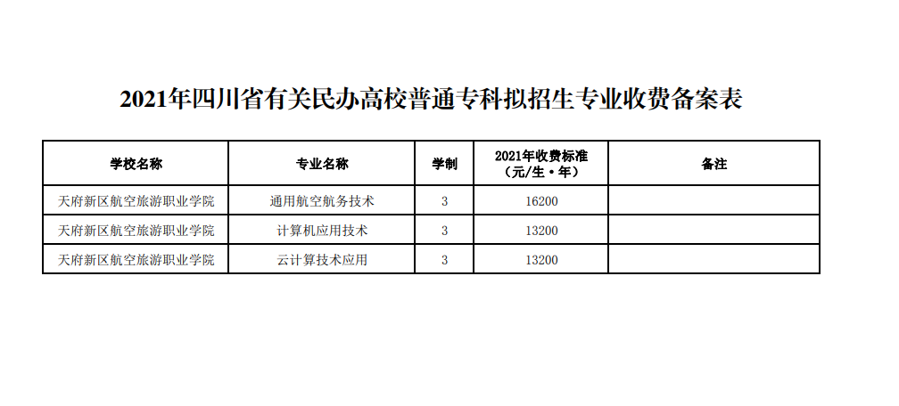天府新区航空旅游职业学院 关于2021年新增专业学生学费收费标准的公示