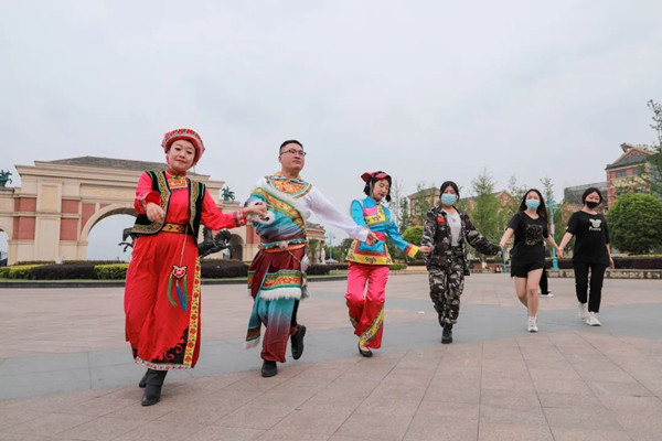 为凝聚校园人心、鼓舞抗疫士气,丰富特殊时期教职工文娱生活,4月8日下午六点,落日熔金,暮云合璧,瑞丽广场染上一层醉人的金辉。团委书记石慧、副书记张磊和武倩老师身着藏族特色长袖皮袍、长坎肩和围裙跳起了“藏羌锅庄舞”。