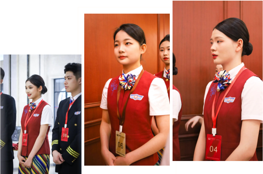 经过面试官对应聘者的外形体态、身高体重、英语水平等严格的基本条件审查后,只有符合条件的学生才能进入下一轮面试。复试环节着重于考察应聘者的沟通表达能力、突发情况应急处理能力,同学们悉心聆听,结合平时所学所悟,仔细思考对面试官的提问进行回答。