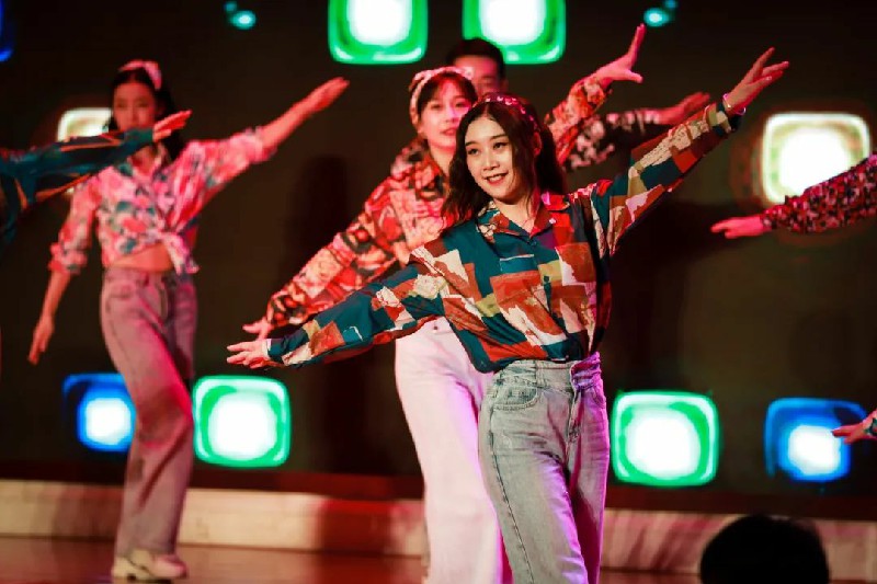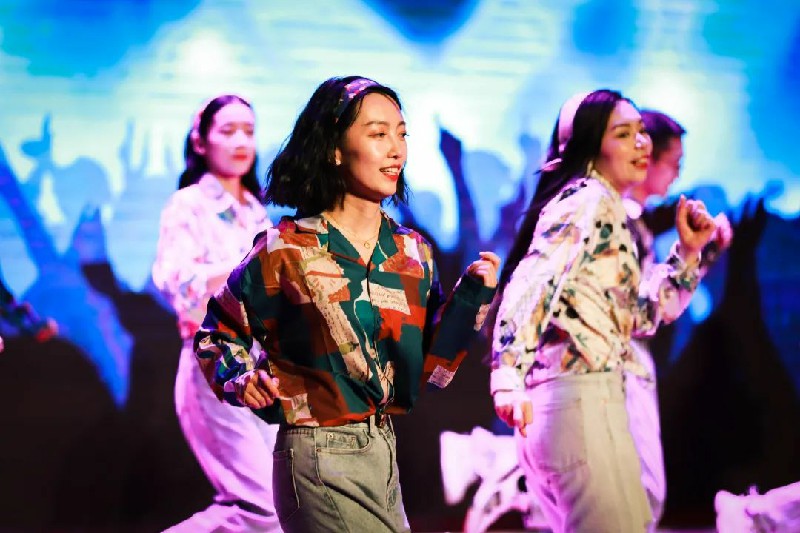 最后是九十年代,六位身着毛线衬衣、条纹格子裙的学生上台助演。她们的热舞充分展现了她们的青春活力。