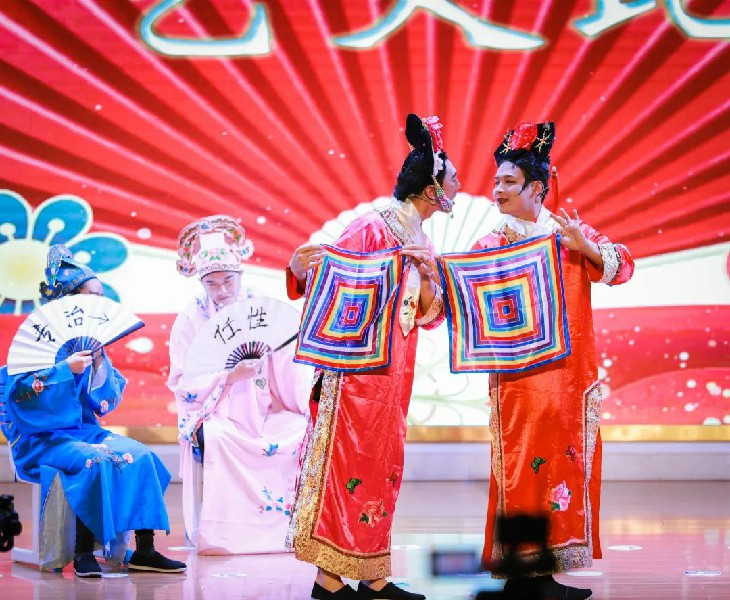随后两组才艺达人登场,第一组是大才子“唐伯虎和祝枝山”,第二组是男扮女装的“紫薇和小燕子”。