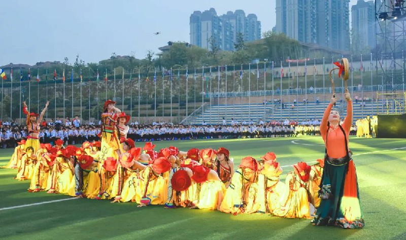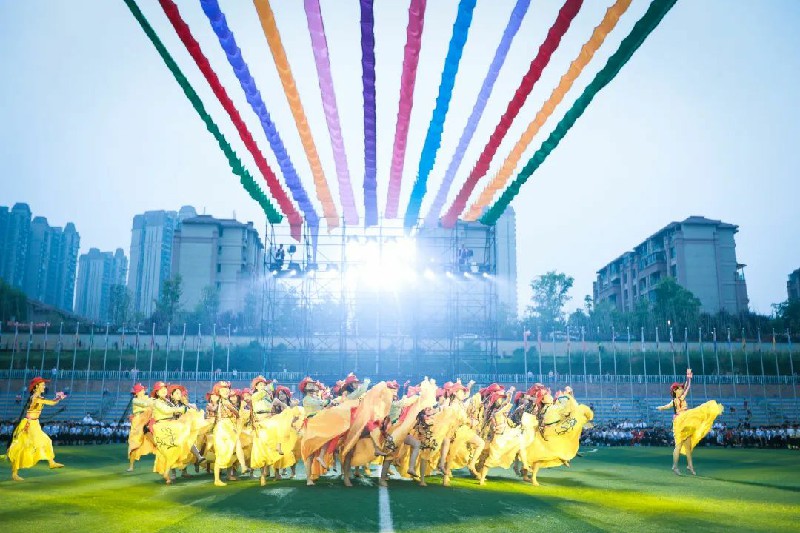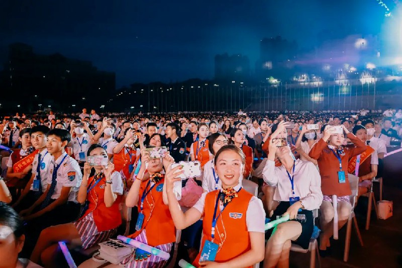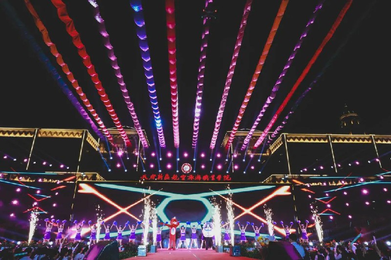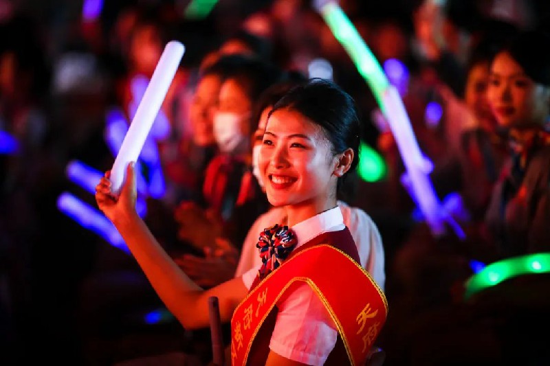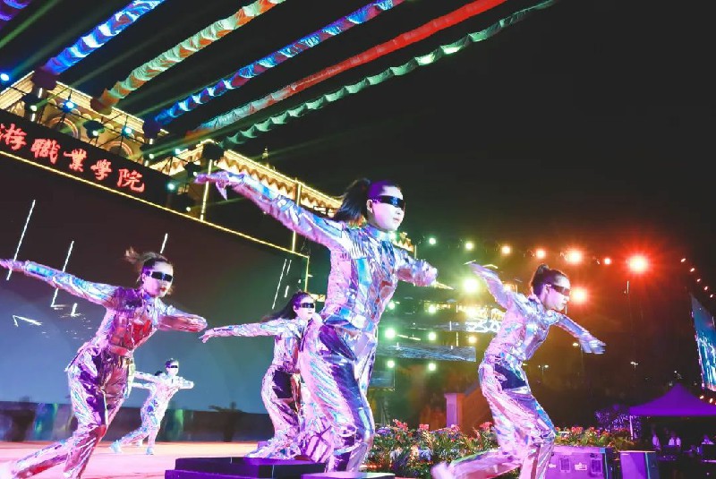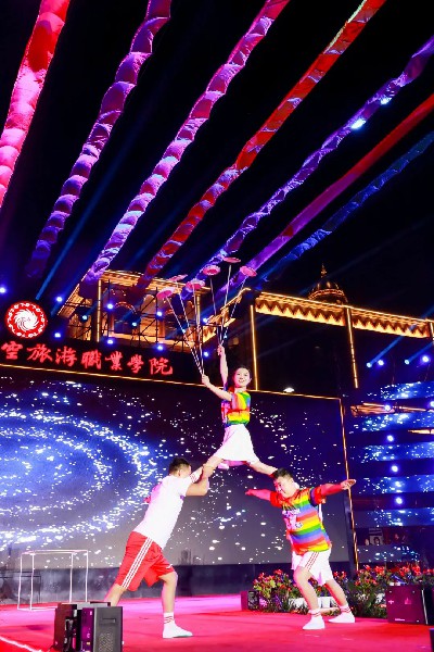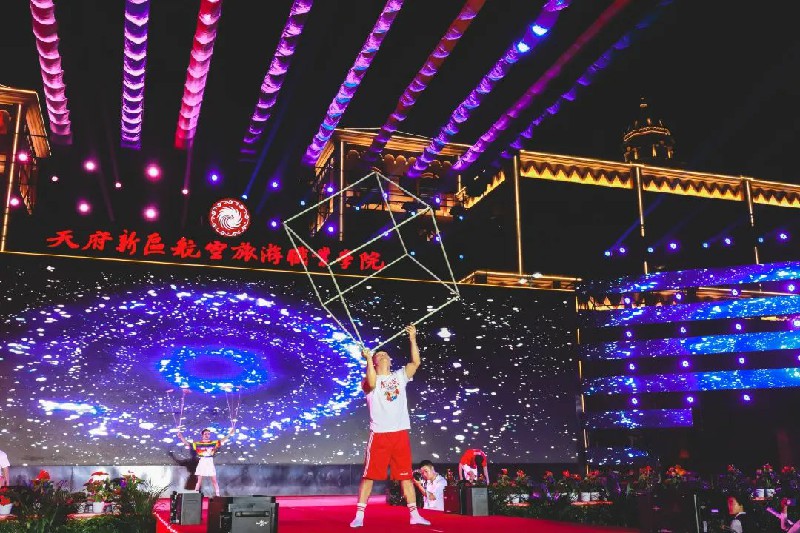 6月10日下午6点30分,雨过天晴,在1万5千余名师生的期待下,天航学院的运动场上,彩带飞舞似长虹,礼炮齐鸣庆典礼。第二届全国院校民航空中乘务专业技能大赛复赛(西南赛区)正式开幕。为庆祝这个全国性的赛事,学院精心准备,隆重举行了“拥抱职教春天、放飞蓝天梦想”主题文艺晚会。中国国粹“川剧变脸、吐火、俏花旦、水袖”节目、现代摇滚音乐、央视《开门大吉》歌手“小杨钰莹”宋颂带来的甜歌演唱等节目,让这台晚会精彩纷呈,全体师生和来宾们共同享受了这场盛大的视听盛宴。