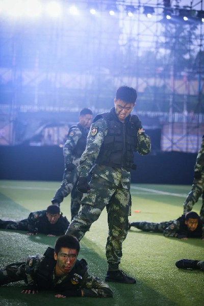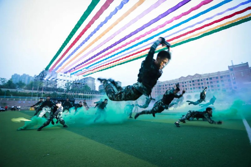 学院校卫队首先带来了精彩的军体技能展示。他们精神振奋,挥拳似重锤,落脚如霹雳,动如脱兔,静若处子,将天航学子的刚毅、顽强、英勇无畏、矫健的身姿展现得淋漓尽致。