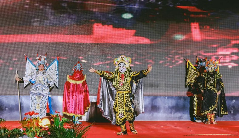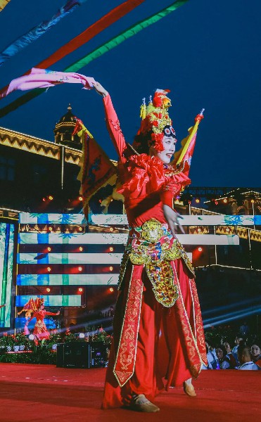 四川川剧变脸文化艺术发展促进会带来精彩表演,四位变脸艺术家头戴凤翅紫金冠,身穿锁子黄金甲,脚踏藕丝步云履,好不威风惊艳。