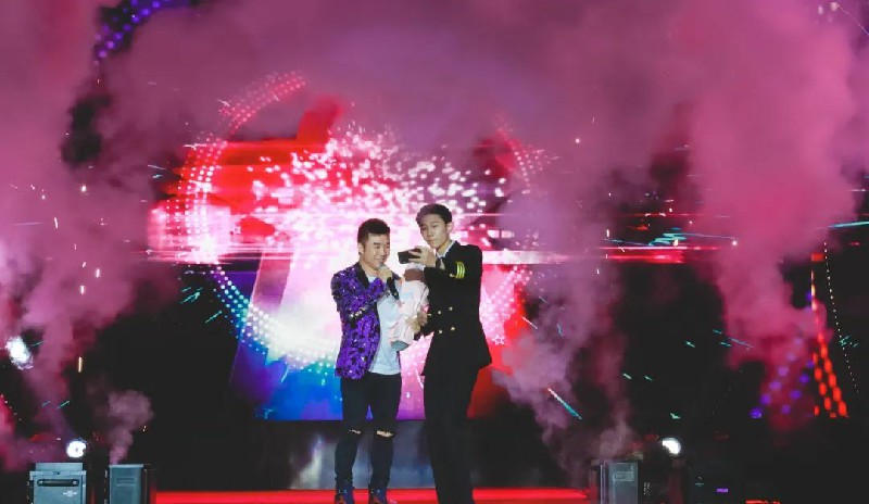 他们走下台与观众互动,更是引发全场欢呼,将晚会推向一个小高潮。