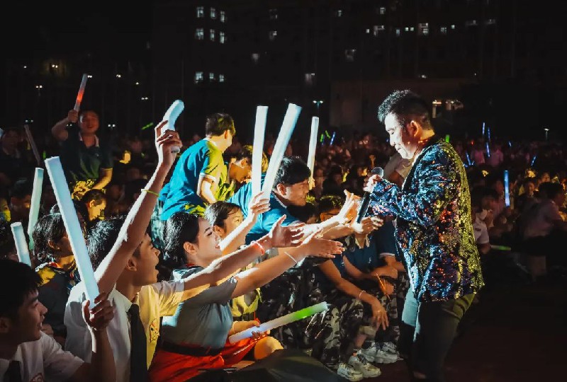 演唱过半,她为全场幸运观众送上签名照和神秘小礼物,再次轰动全场。在她提出要邀请一位男老师一起唱歌后,全场最幸运男老师出现,他就是倪兴隆老师。
