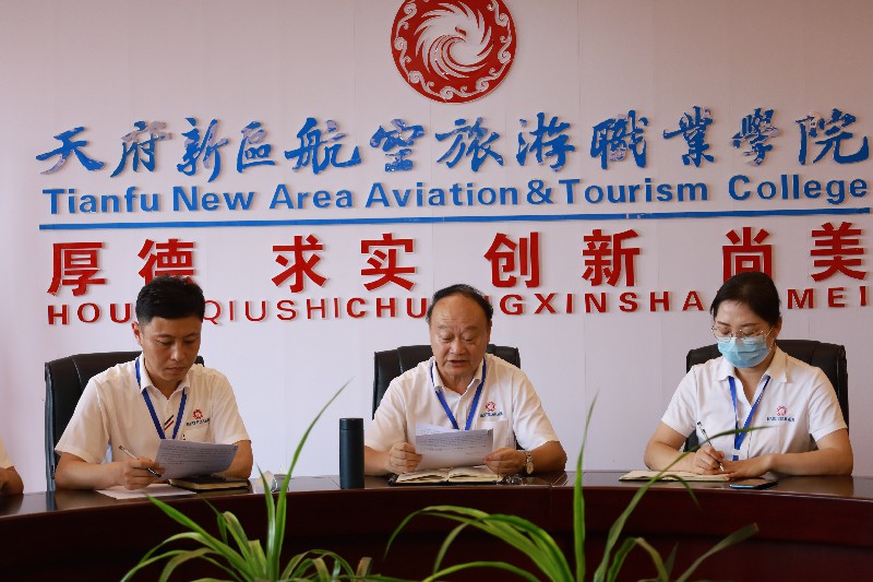 会上,招生外联处处长刘阳宣读了《天府新区航空旅游职业学院2022年招生录取工作方案》,学习传达了四川省高等教育招生考试委员会、四川省教育厅《关于做好我省2022年普通高校招生工作的通知》、四川省教育考试院《关于我省2022年普通高校招生录取工作安排的通知》文件精神,以及学院招生录取相关工作制度,介绍了我院2022年各省(区、市)招生录取日程安排,通报了招生录取现场布置情况。