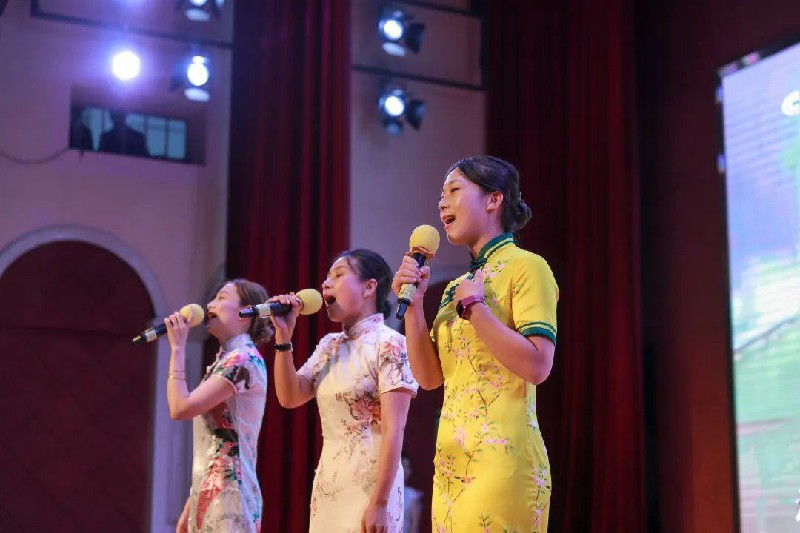 柴雪莲、梁恒、曾何丽等老师们,将传统旗袍服饰与经典歌曲结合,表演了一首《千千阙歌》。粤语,日语 ,普通话的结合更是别出心裁,创意十足。