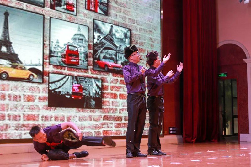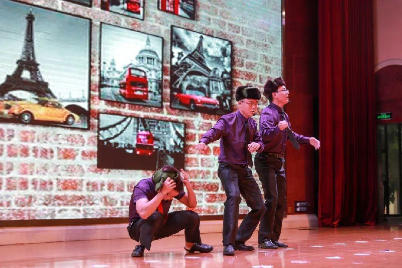 由骆江洪、郑永康、曾文旋老师以一种新颖的形式表演《喀秋莎》。演员们幽默风趣的出场,逗笑了台下观众。