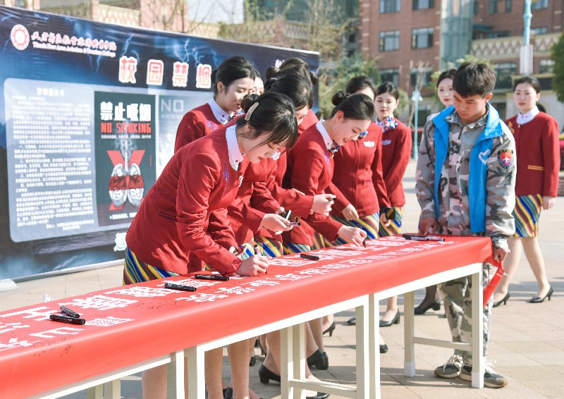 “作为天航学子的我们,吸烟不经会损害我们的身心健康,而且还会直接影响我们以后就业,因为民航专业的特殊性,所以我们必须禁止吸烟。”空中乘务专业陈思雨说。