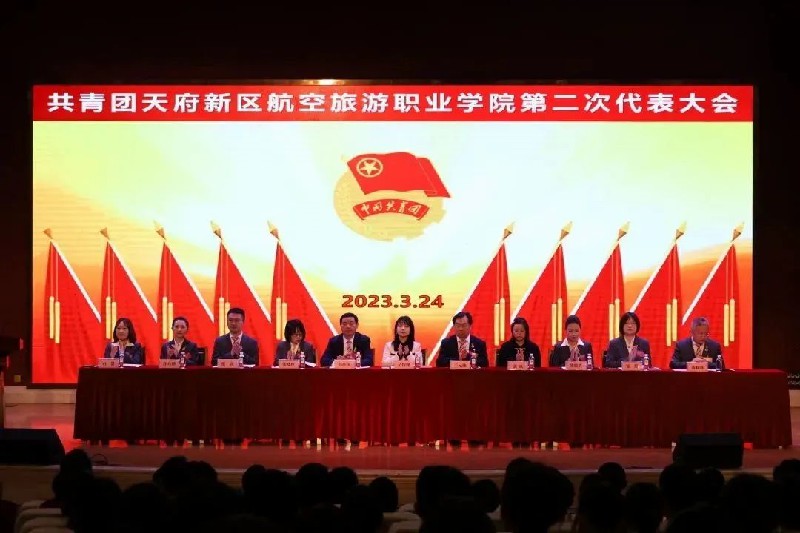 为进一步加强我校共青团的自身建设,更好地发挥共青团在服务学校党政工作大局作用,团结带领全校广大团员学生,深入学习贯彻党的二十大会议精神和习近平新时代中国特色社会主义思想,全面推进学校第二次党代会和第九届董事会的奋斗目标,2023年3月24日,中国共产主义青年团天府新区航空旅游职业学院第二次代表大会在多彩大讲堂隆重举行。