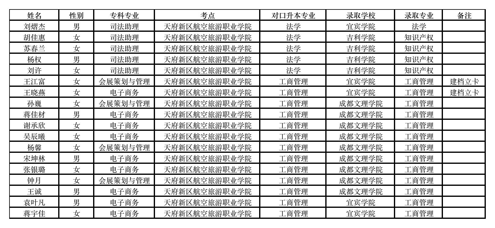天府新区航空旅游职业学院关于宜宾学院 2023年专升本拟录取和调剂录取名单公示