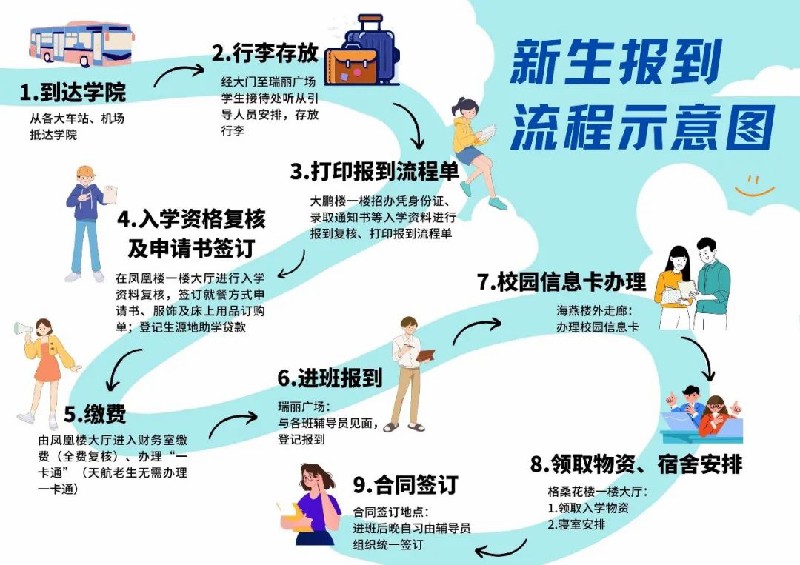 ①新生报到期间,学院在成都东站、黄龙溪旅游客运中心、成都双流国际机场、成都天府国际机场等处均设有接站点,接站联系电话400-888-3105;