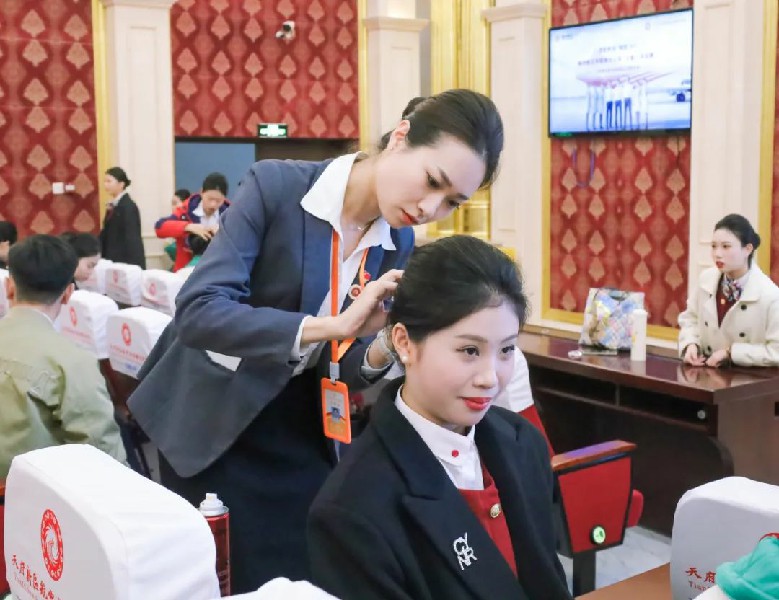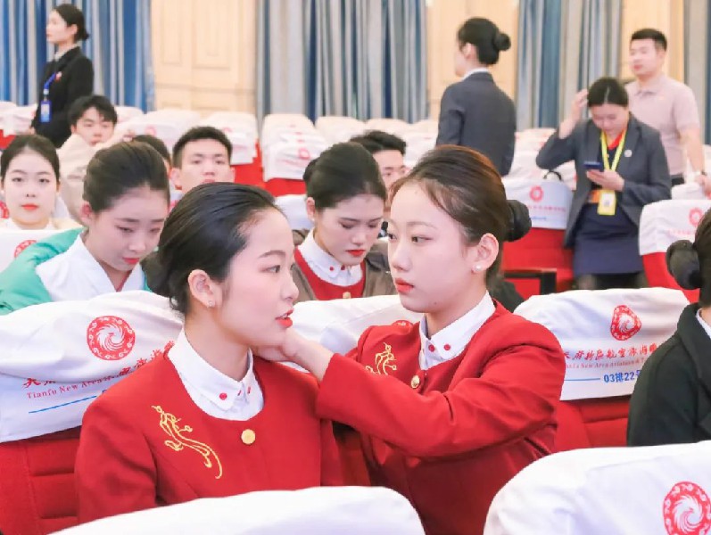 招聘会终审在第二天举行,同学们身着制服化身“准空姐”,向面试官们自信地展现出“天航范”儿,展示了民航学子的风采和实力,呈现出了应有的精神面貌和职业素养。