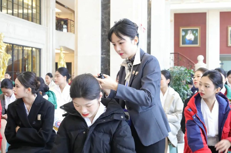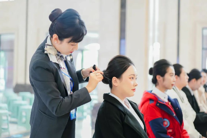 空乘学院、就业处老师为每一位同学检查妆容及发型,并再次给他们强调面试要求和传递经验,为他们加油打气!