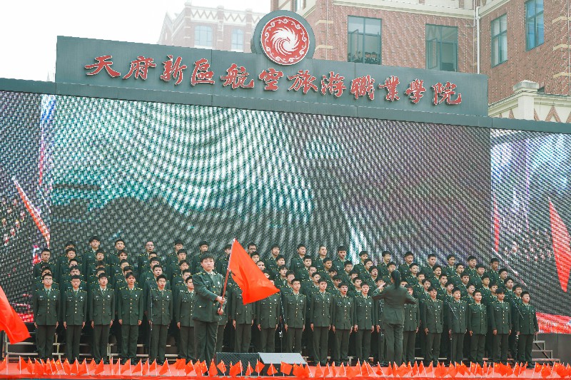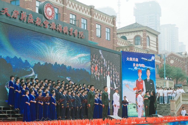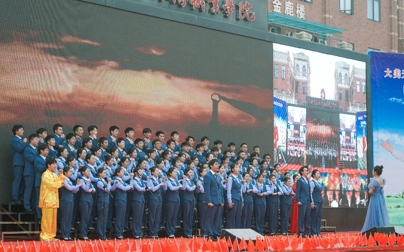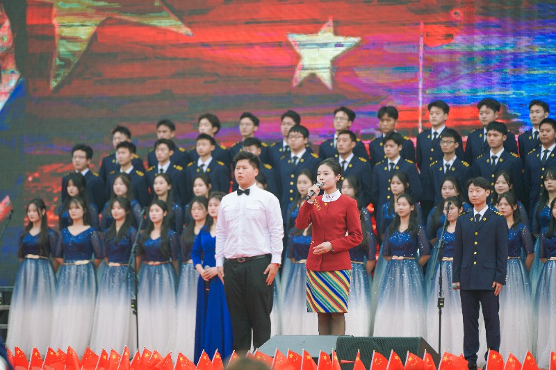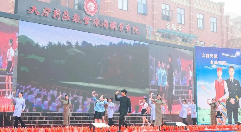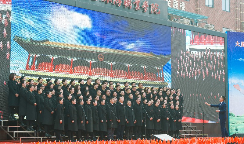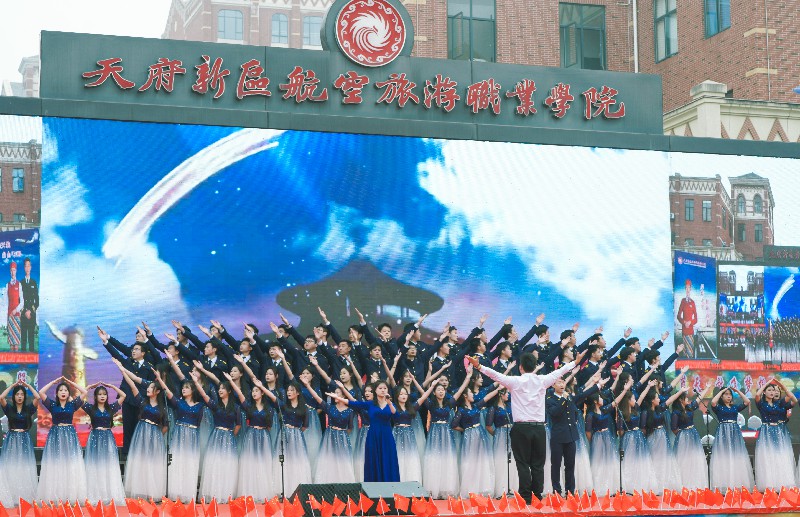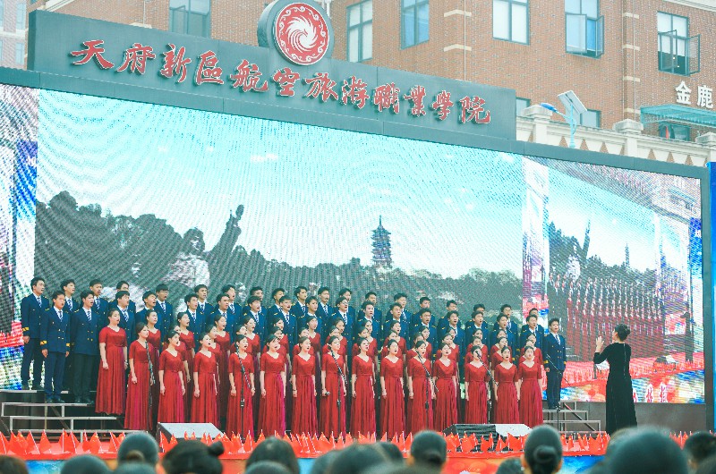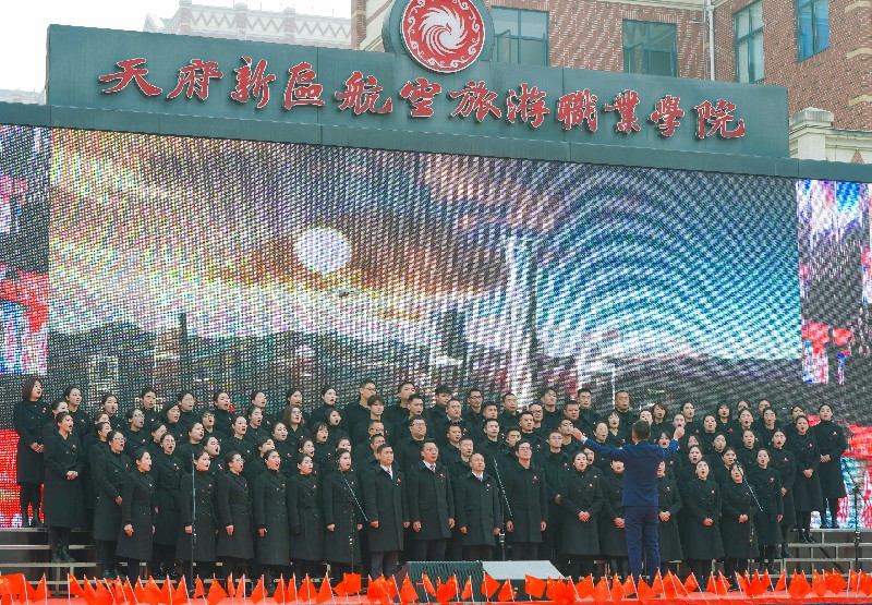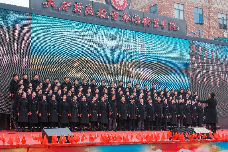 在舞蹈《辉煌中国梦》中,天府新区航空旅游职业学院“歌颂时代荣光,唱响红色经典”纪念一二·九运动合唱比赛圆满落幕!