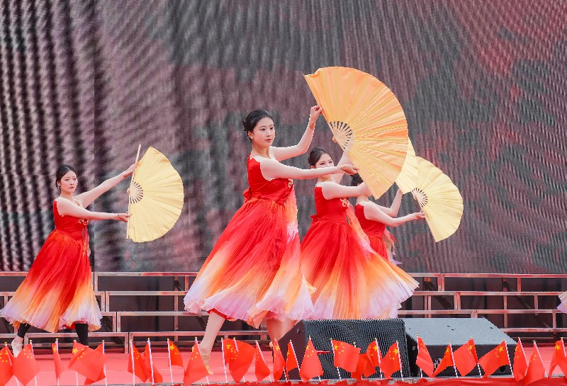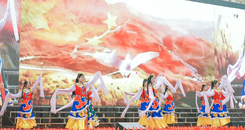 以舞蹈形式歌颂着党的英明领导,激发现场观众的热情。
