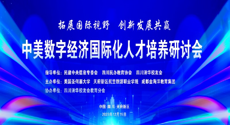 12月15日上午,“中美数字经济国际化人才培养研讨会”在天府新区航空旅游职业学院成功举办。本次研讨会由民建中央信息专委会、四川民办教育协会、四川清华校友会指导,天府新区航空旅游职业学院、美国圣何塞大学、成都金海洋教育集团联合主办,四川清华校友会教育分会协办。