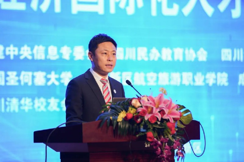 民建中央信息专委会副主任高清淼在视频致辞中指出,天府新区航空旅游职业学院在高技能,高素质人才的综合培养方面具有一定的影响力,在航空、轨道交通、信息技术、卫生健康等领域的人才培养方面也取得了丰硕的成果,为国内国际的人才输出做出了贡献,这次活动希望能够集思广益,共同探讨国际化人才的培养模式,拓宽人才培养渠道,聚焦职业教育的高质量发展,从而更好地促进人才的培养,共谋数字经济国际化人才培养新发展。