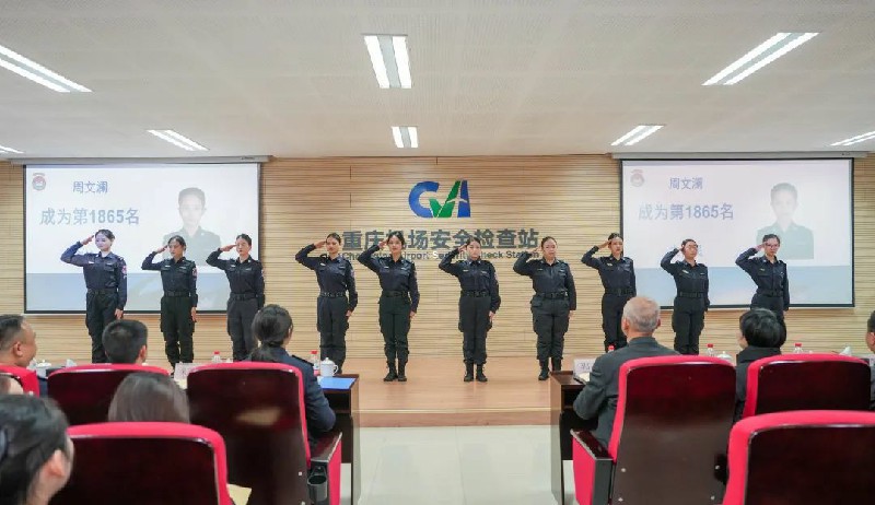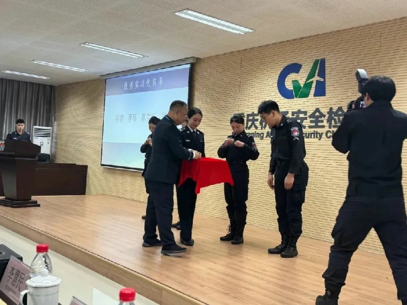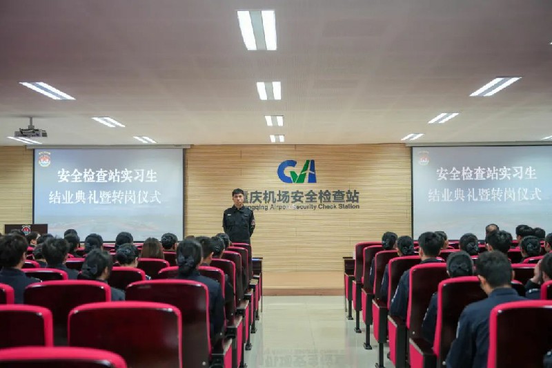 近日,重庆机场安全检查站举行实习生结业典礼暨转岗仪式,据了解,前期我校共有67名同学赴重庆机场实践实习,经过6个月的实践考核,其中28名同学在首批转岗仪式上转为正式员工,剩下的将陆续转岗。学校副院长刘胜辉,就业院长助理王艳丹受邀参加本次仪式。