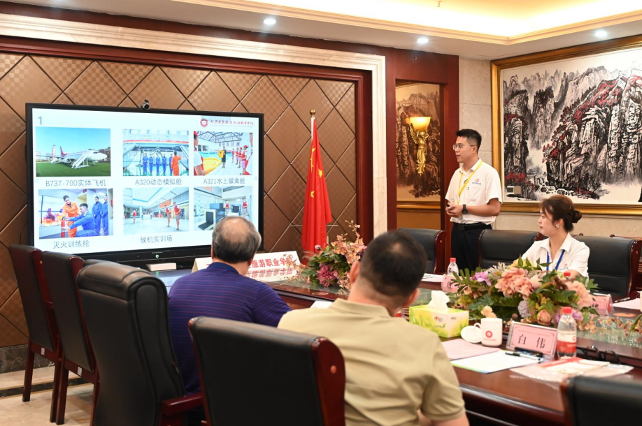 为推进学校“中国民航科普教育基地”建设,9月10日,中国民航科普基金会副秘书长钱进全,科普教育部副部长白伟莅临我校开展2024年度中国民航科普教育基地复检评估工作。天府新区航空旅游职业学院执行院长、学术委员会主任、教授刘院长,空中乘务学院、实验实训中心教研室主任唐瑜等老师参会。
