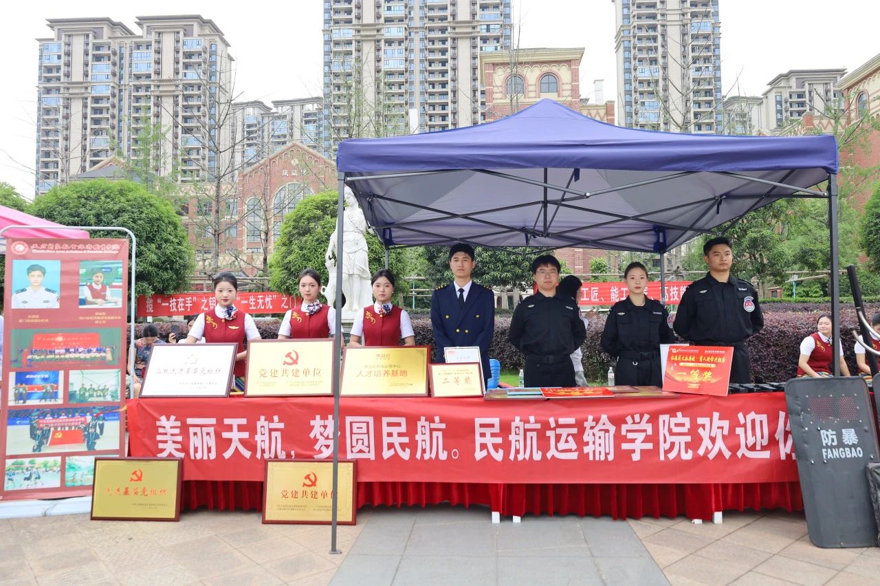 民航运输学院展区陈列的行业资质认证、安检教学设备及多项技能大赛奖章,既是产教融合成果的集中展示,更是民航安全理念的生动诠释。在安检表演环节,学生们化身安全卫士——当模拟的可疑分子突然冲出人群,安检人员们一个箭步上前,双手如鹰爪般精准锁住对方手腕,转瞬间将人制服在地,展现出扎实精湛的专业技能。