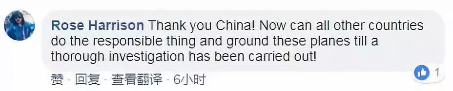 网友评论:感谢你中国,做了这件负责任的事!现在别的国家终于有了榜样可以停飞这些飞机,直到调查结果水落石出。