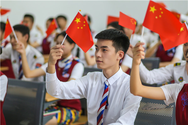 天蔚蓝,地碧绿,和风丽日。清晨,一轮红日冉冉升起,从俄罗斯留学归国的天航老师徐晶晶一袭红衣,手执长笛迎着朝阳,一曲悠扬的笛声在学院上空萦绕。伴随着《歌唱祖国》的序曲,一群脸上贴着五星红旗等爱国标志、手中挥舞着国旗的大学生们走出宿舍楼……