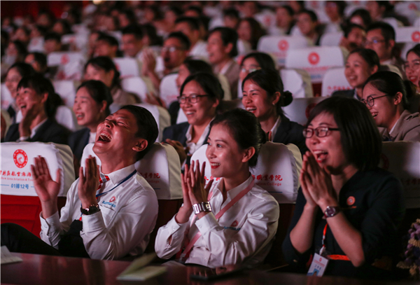 空乘礼仪展示节目《航空礼仪秀》、女声合唱《不忘初心》、器乐合奏《青花瓷》、《快板贯口》、古典舞蹈《韵》、配音秀《身临其境》、武术《竹林舞韵》、男声三重唱《少林少林》、太极拳《易筋经》、街舞《精舞门》等,一个个充满时代主旋律和灰诙谐幽默的节目,令人忍俊不禁,充分体现了我院教职工蓬勃向上的精神风貌和艺术素养,展演现场高潮迭起,喝彩声不绝于耳。