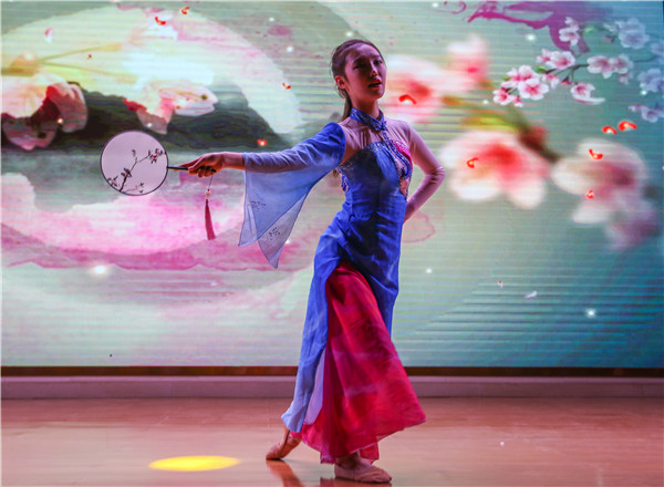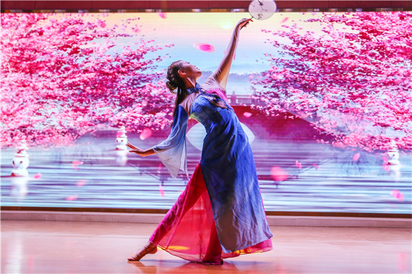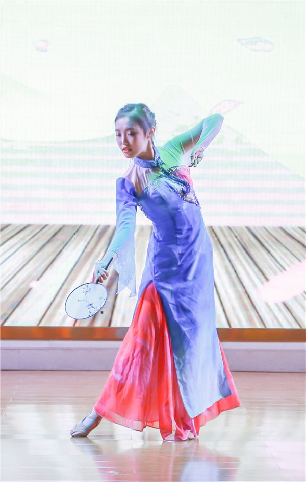 拍摄部陈昱含同学带来独舞《宫墙柳》。在轻歌舞动中展现自己曼妙舞姿,现场氛围沉浸在一片柔情之中。