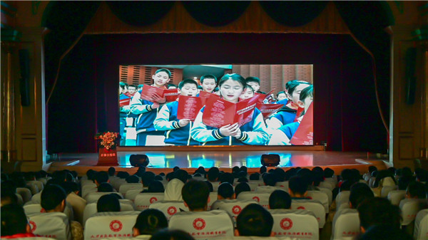 师生观看教育部北京主会场“学宪法讲宪法”活动的网络直播