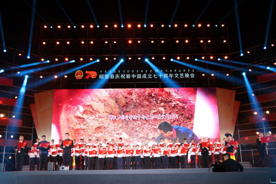 我院扶贫干部张伦畅在昭觉县庆祝新中国成立七十周年文艺晚会上领诵诗歌