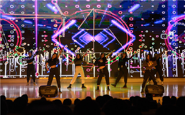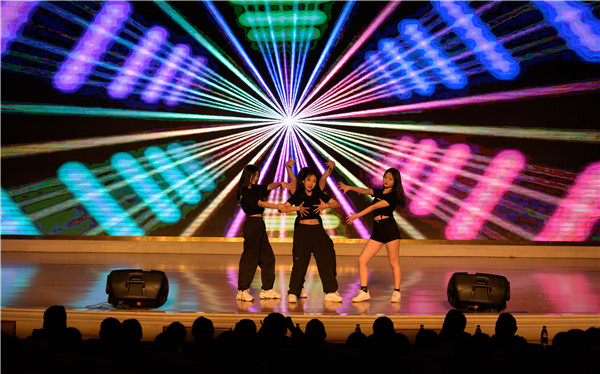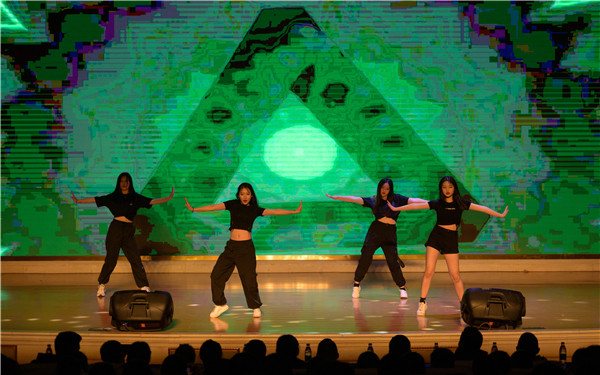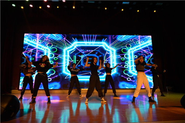 在大会节目表演环节中,同学们精彩演出赢得了现场阵阵掌声。首先出场的是韩舞社带来的《Me》,动感的节奏,美妙的旋律,劲歌热舞无不展现着青春的活力。