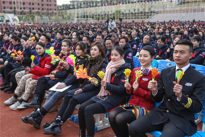 四川东星航空教育集团董事长辜英智,院长刘存绪教授,党委书记、督导专员王元珑教授等领导,四川卫视《想走就走旅行栏目》制片人程鹏,“走鸭旅行”创始人余汶漫,“龙情大刀腰片火锅”董事长李建新等嘉宾及全院教职工出席。师生们一起相聚狂欢,其乐融融的景象描绘出天航“大家庭”的温馨祥和与浓浓的师生情谊。