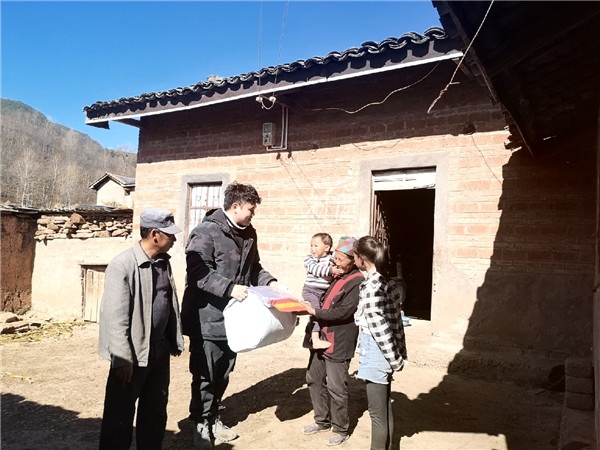 2020年元旦伊始,天府新区航空旅游职业学院驻村帮扶干部张伦畅来到对口帮扶的昭觉县四开乡乃拖村,为贫困户们送上了新年的问候以及过冬的棉被等物资,在2020新年之际将天航的温暖传递到帮扶村民的心中。